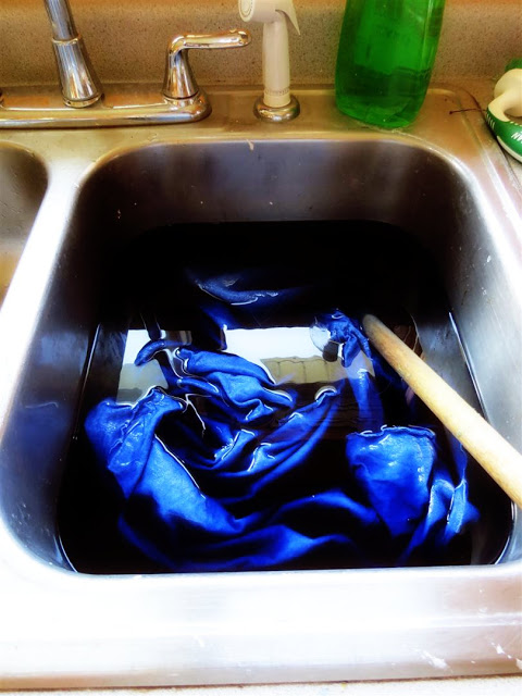 I don’t do white clothes because I’m clumsy they stain too easily, so I threw each one into a dye bath after I finished sewing it.