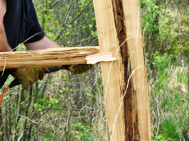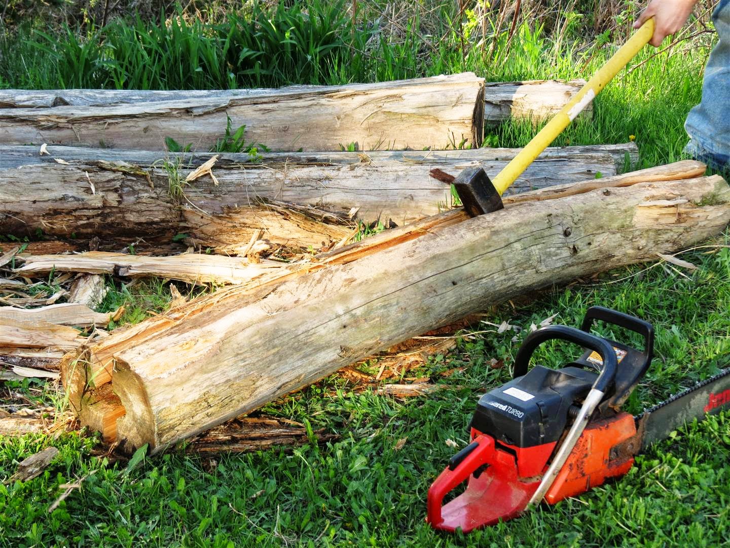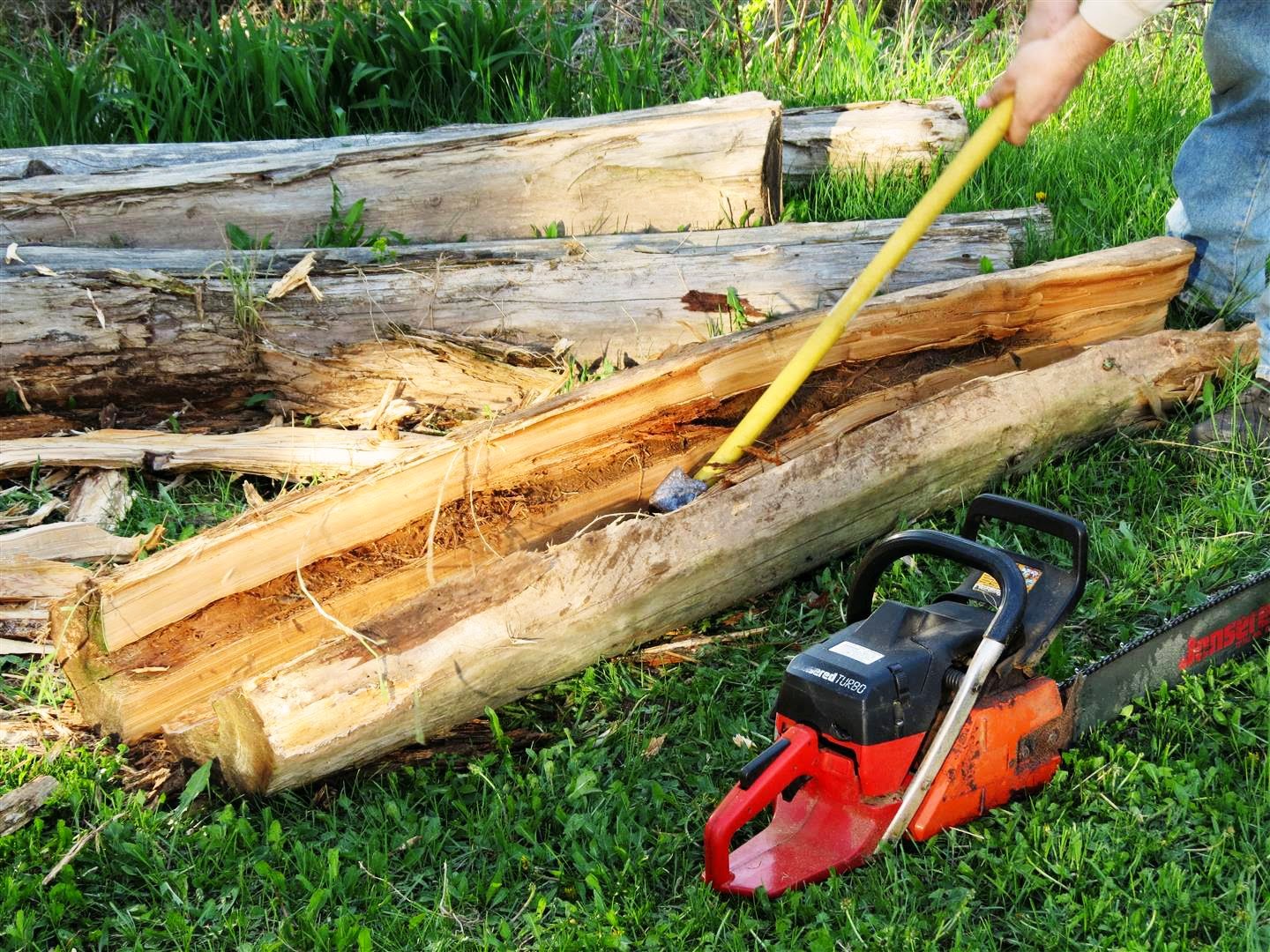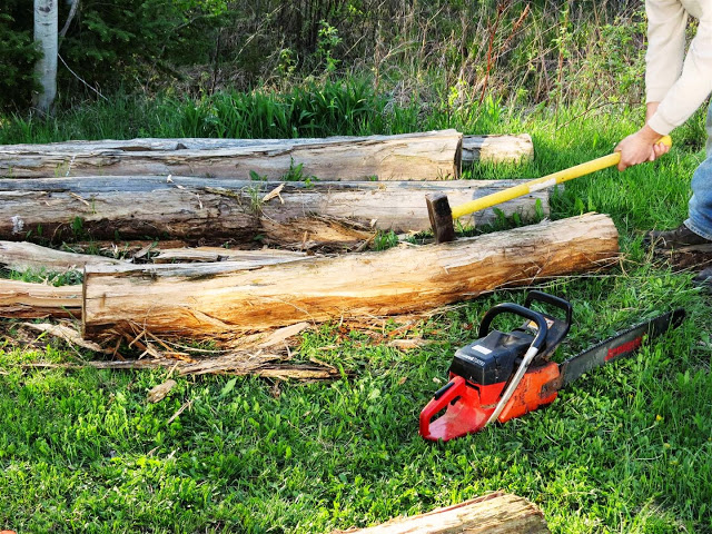 There are several ways to split cedar logs. My husband just started whacking the log with a splitting maul, working in a straight line down the length of the log.
