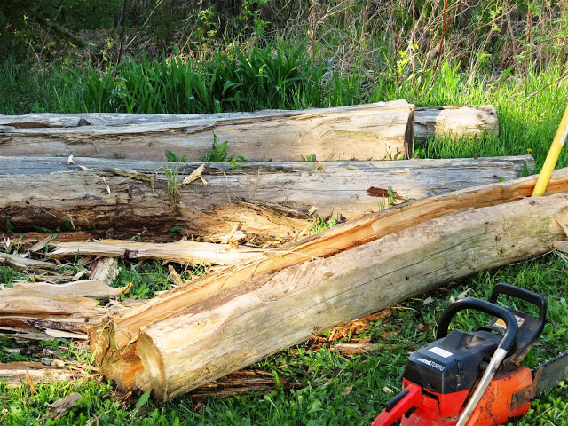 Remember the cedar logs that used to contain our garden? We didn’t get rid of them. Hoarders are us.
