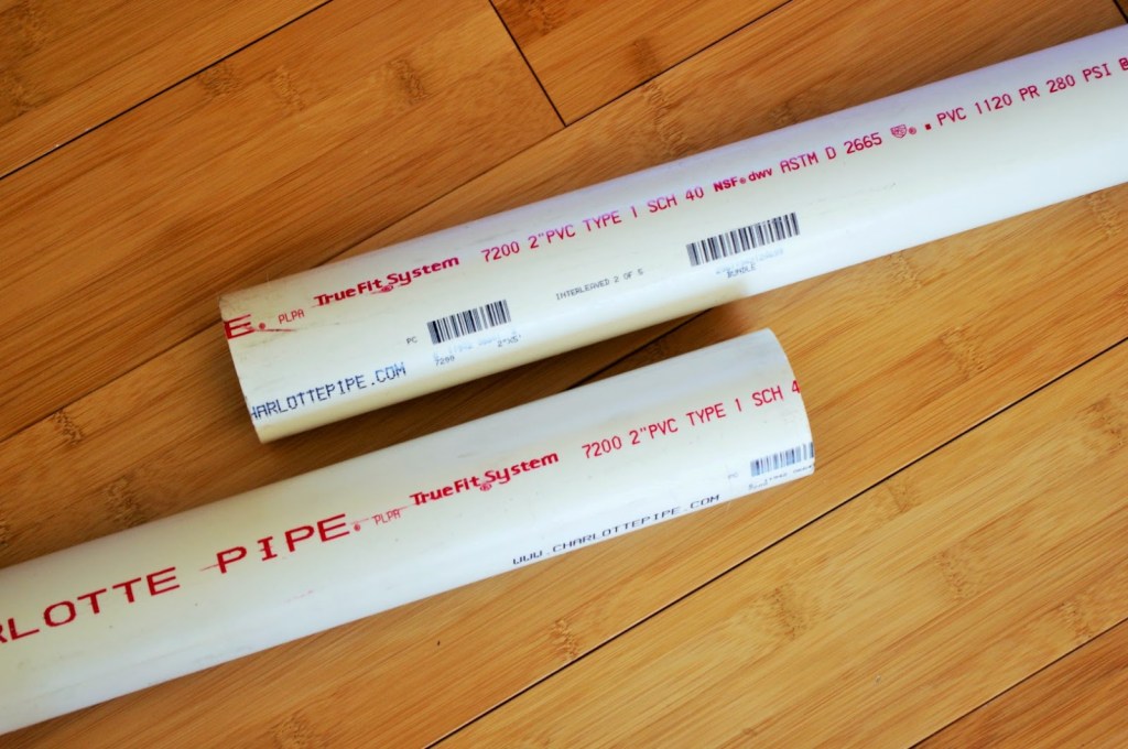 So. To the hardware store I went, and bought two 5 foot sticks of 2-inch PVC pipe.